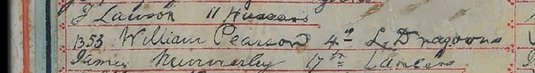 Another native of Penrith, one James Smith (born 1828), had been at school with William Pearson, and in 1845 joined the 1st Life Guards. He later said that a couple of years after joining up he had met up again with Pearson who had come to London seeking work. Smith sent him to see Colonel the Hon. Cecil Lowther of the 7th Hussars, a veteran of the Peninsular War, who had served under Sir John Moore in the famous retreat at Corunna in 1809.