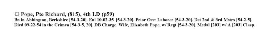 Next of kin: Wife, Elizabeth Pope, with the regiment in the Crimea.