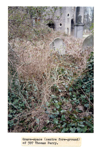 A close study of the grave-site plans and of the grave area reveals that on one side of his grave a stone had been placed to a member of the Phillips family in 1884, and in 1951 another stone and kerb to a person of the same surname was placed immediately next to this. In order to do so Perry's stone almost certainly must have been removed and the grave partially re-opened.