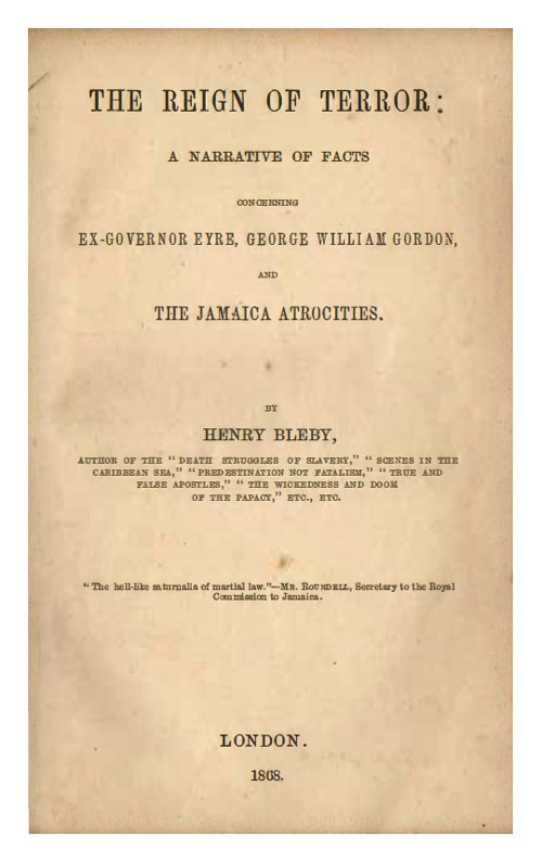 The philanthropy and the Christianity of Britain suffered a sad eclipse in the events which transpired in Jamaica during the latter part of 1865; and the honour of the British army and navy was shamefully sullied by the brutality of military and naval officers, and the readiness with which they lent themselves to perform deeds of cruelty, to which we can scarcely find a parallel amongst any savage people on the face of the earth. Englishmen felt the blush of shame and indignation mantling their cheeks, at the dishonour done to themselves and their country, when they saw one filling the proud position of their Queen's representative coming down from his high station, eagerly thrusting aside the policeman, and invading his office and duty, to capture and punish a political opponent, and also personally superintending and taking part in the cruel death of a poor Negro, who in the silence of the night is dragged from his home, and, after a wretched mockery of a trial which is a burlesque upon the administration of justice, is at once put to death with circumstances of revolting inhumanity. The shame and indignation thus felt was aggravated, as they read of men commanding vessels in Her Majesty's navy, performing the degrading duties of the hangman; and