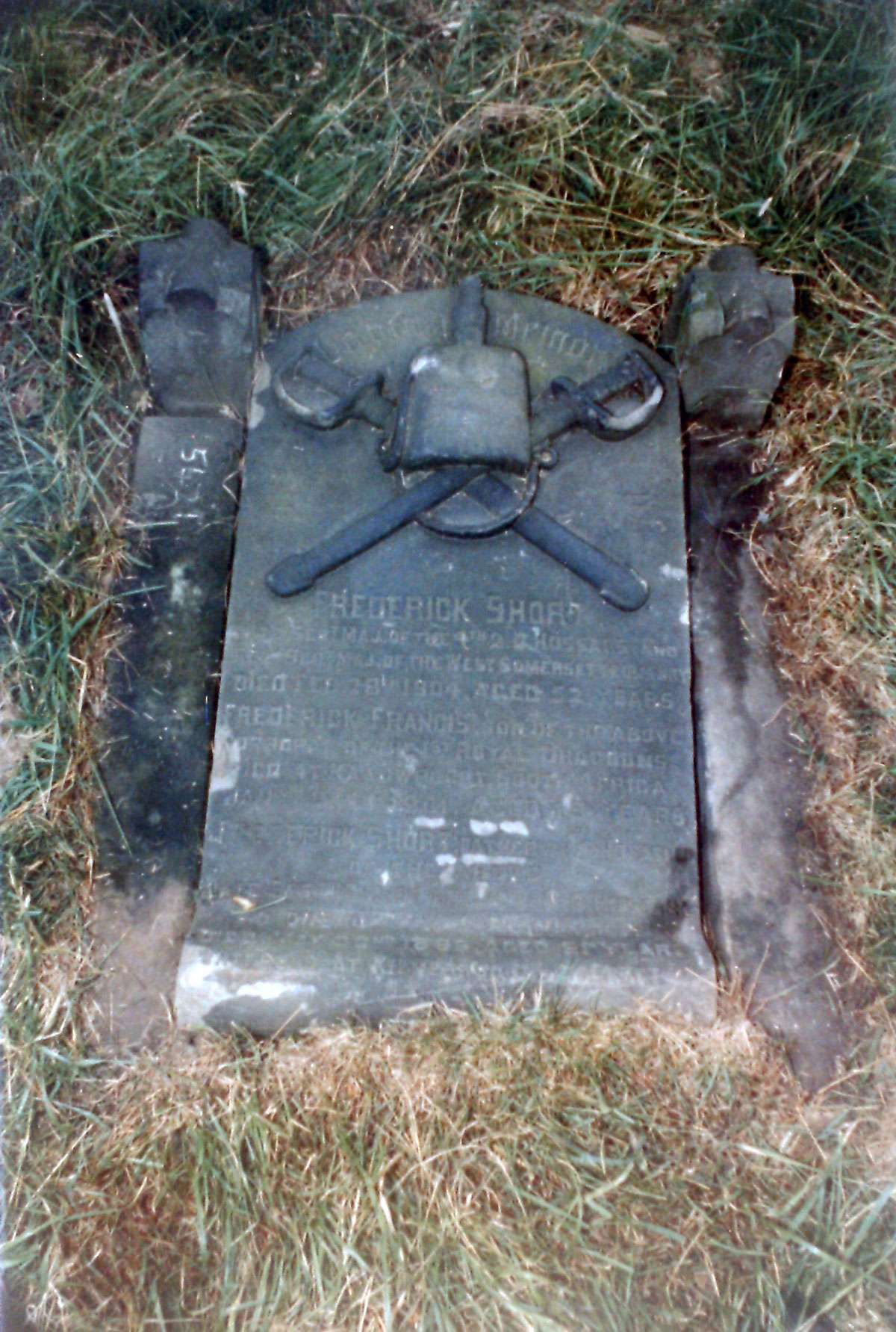 1230 Frederick Short's son, Frederick Benjamin, formerly R.S.M. of the West Somerset Yeomanry, has a memorial erected over his grave in Beckett Street Cemetery, Leeds, which also commemorates his father and his son. The memorial is of the recumbent type and is laid on the grave surface. "In Loving Memory Of" is around the top of the stone and is surrounding a carving of crossed swords and a soldier's busby. The inscription is as follows: