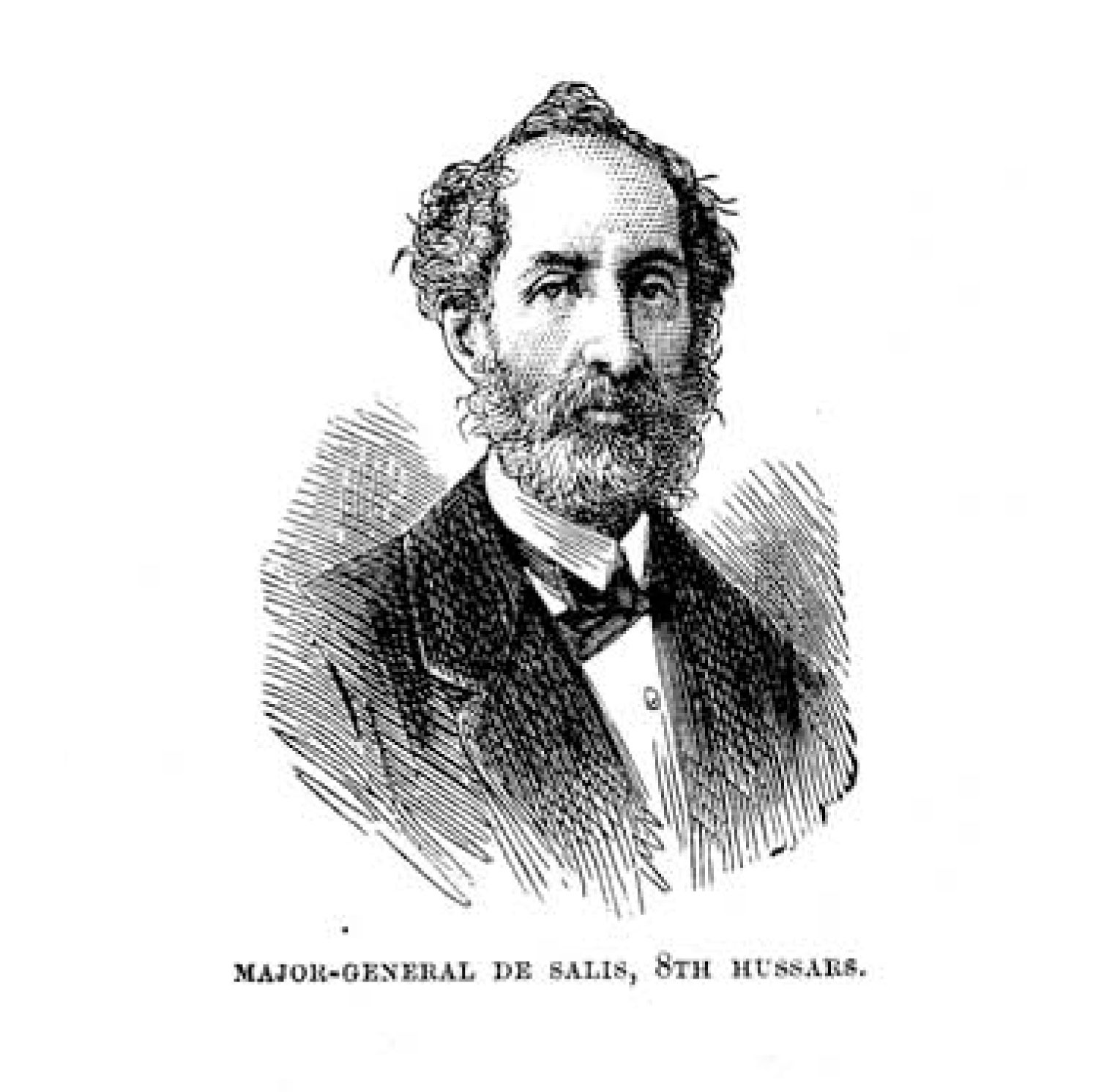 "Lieutenant-Colonel Robert [sic] De Salis, served the Eastern campaign of 1854-55, including the battles of the Alma, Balaclava, Inkerman, the Tchernya, and the Siege of Sebastopol.