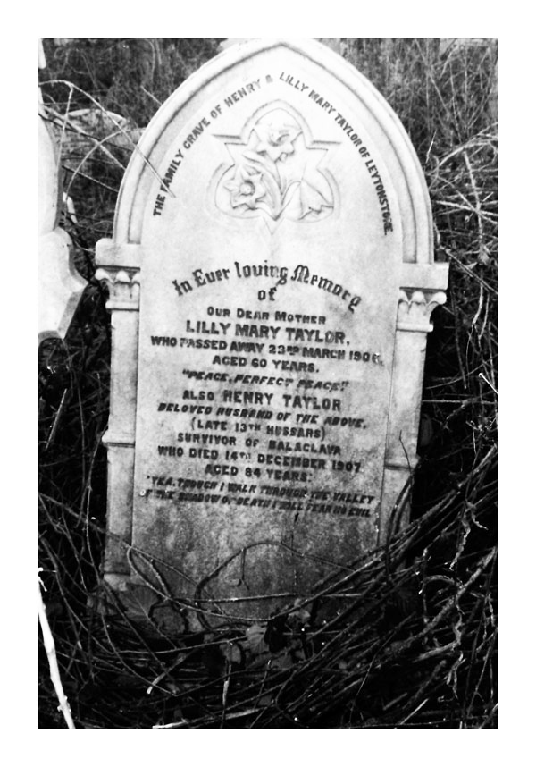 "Also Henry Taylor, beloved husband of the above, late 13th Hussars, Survivor of the Balaclava Charge, who died 14th December 1907, aged 84 years."