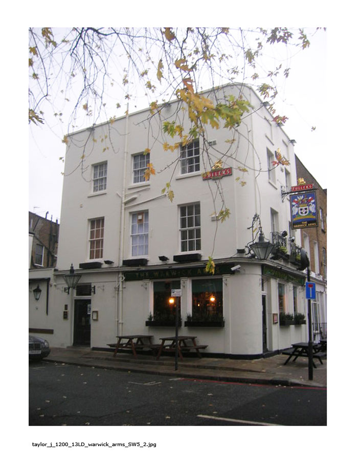 To live c/o "The Warwick Arms", Warwick Road, Kensington, London, and was still in the West London Pension District in 1875.