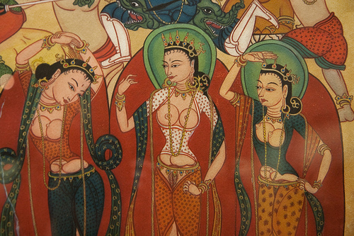 Mara's three daughters are identified as Tanha (Craving), Arati (Aversion/Discontentment), and Raga (Attachment/Desire/Greed/Passion).[10][12] For example, in the Samyutta Nikaya's Mara-samyutta, Māra's three daughters were stripping in front of Buddha; but failed to entice the Buddha: