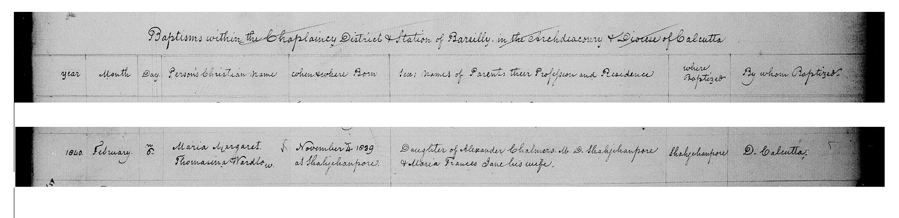 Maria Wilkin, 40, wife, Shahjahanpore, Bengal, E. Indies.