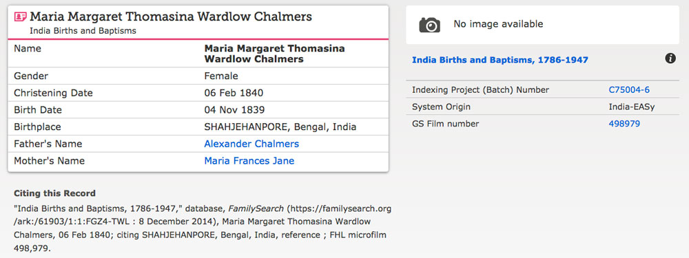 British India Office Ecclesiastical Returns, Births & (FindMyPast).