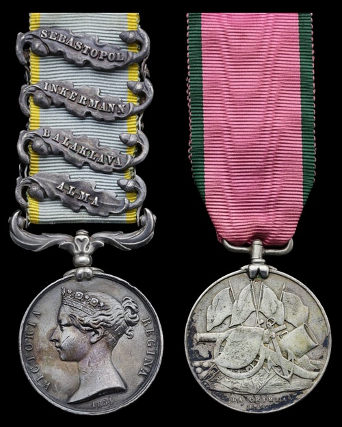 Entitled to the Crimean medal with clasps for Alma, Balaclava, Inkerman, and Sebastopol, and the Turkish medal.
