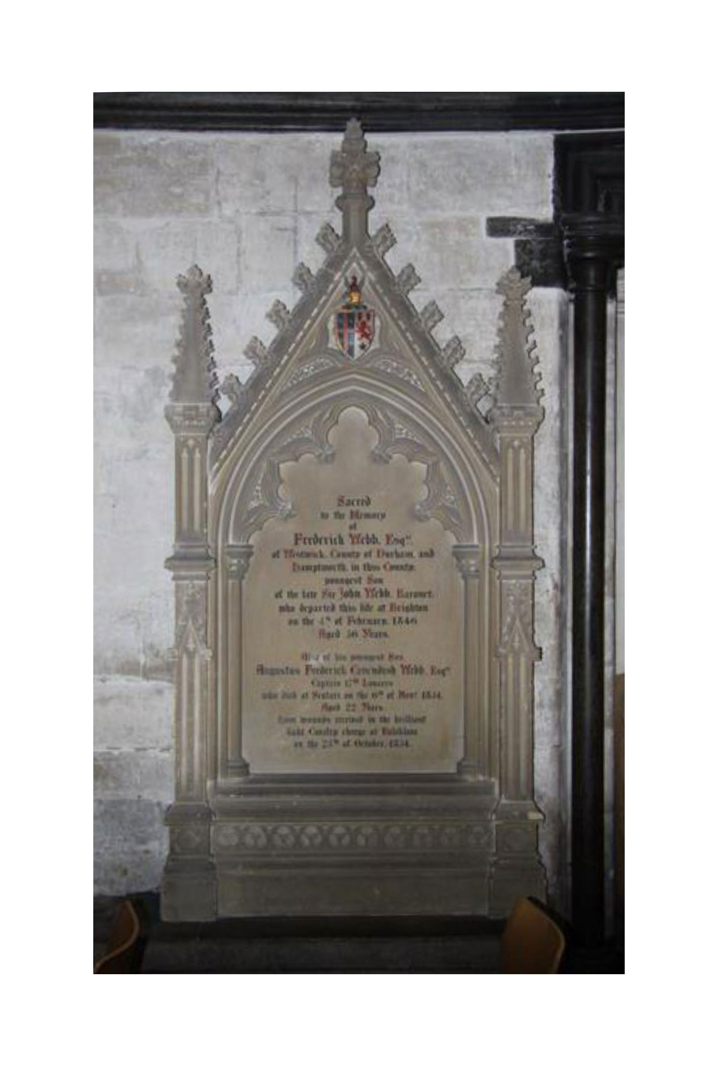 "Wall tablet in nave to Captain Augustus Webb of 1854 by Waudby of York, recording death from wounds received in Charge of Light Brigade at Balaclava. "